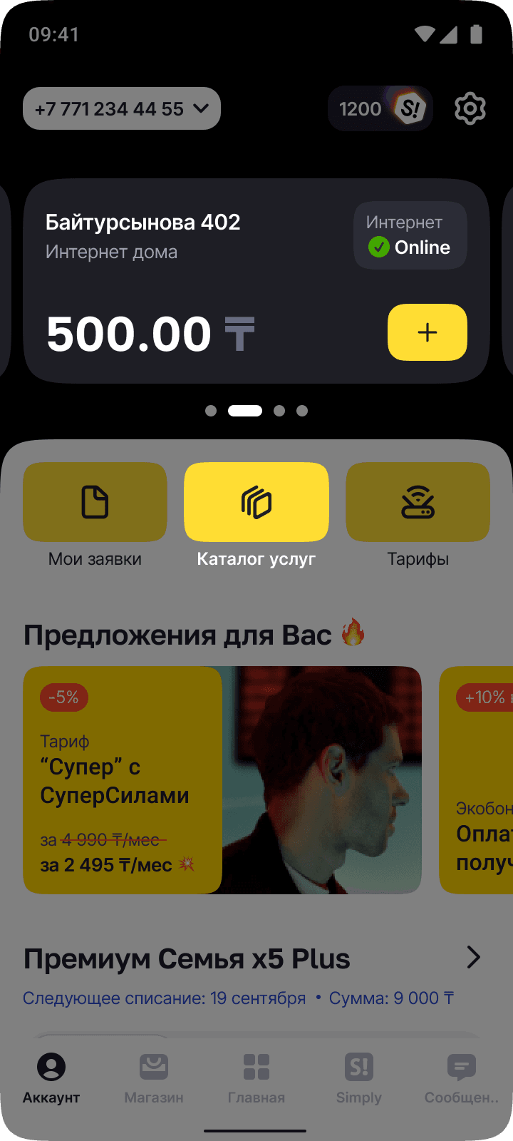 1. Скачайте приложение Janymda и авторизуйтесь под мобильным номером. Свайпните влево для перехода в свой логин.